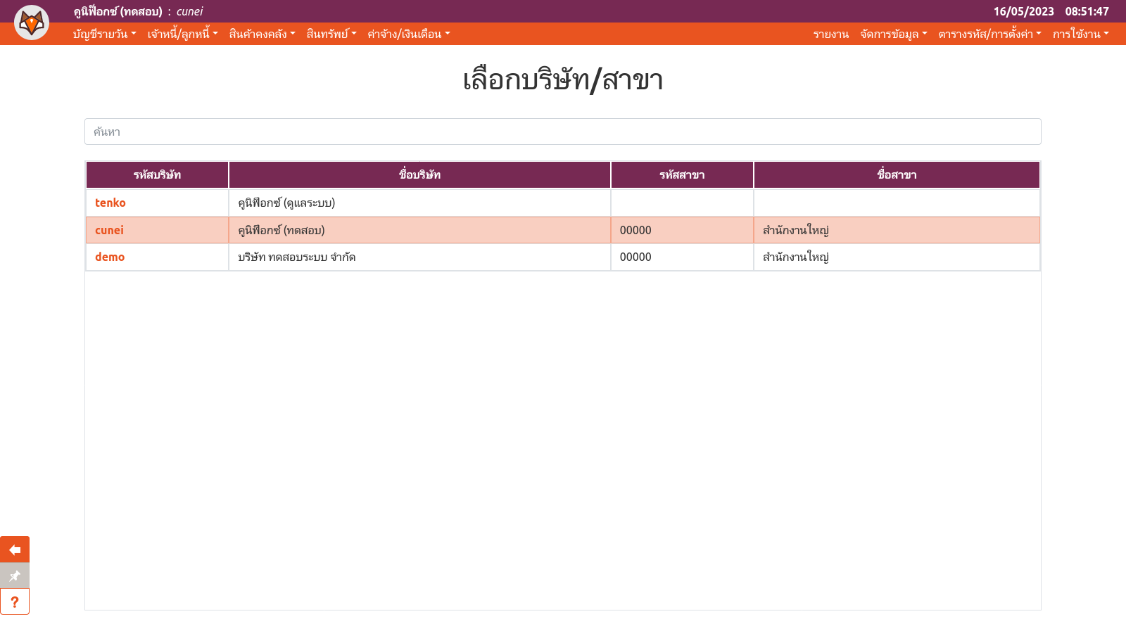 เพจเปลี่ยนบริษัทที่ลงชื่อเข้าใช้