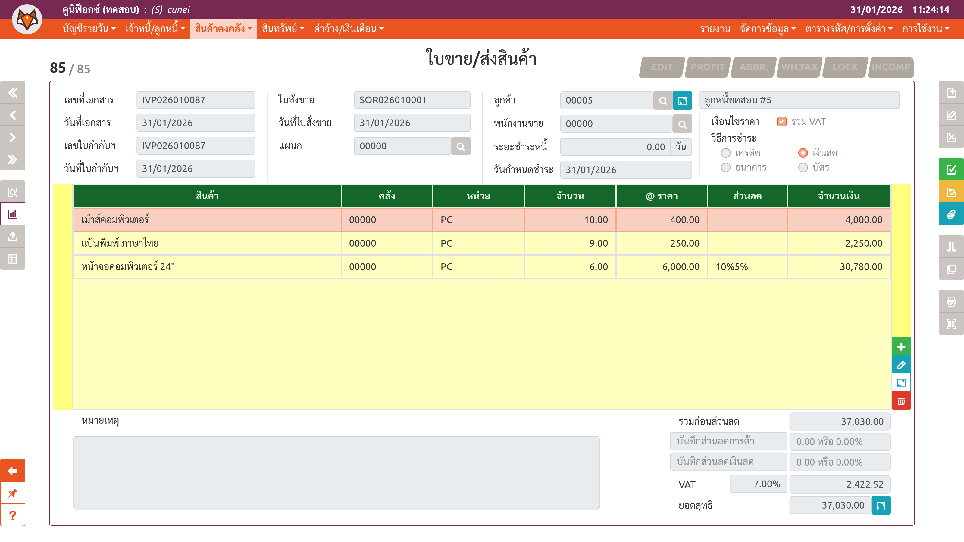 เพจ "ใบขาย/ส่งสินค้า" (ขั้นตอนที่ 3)