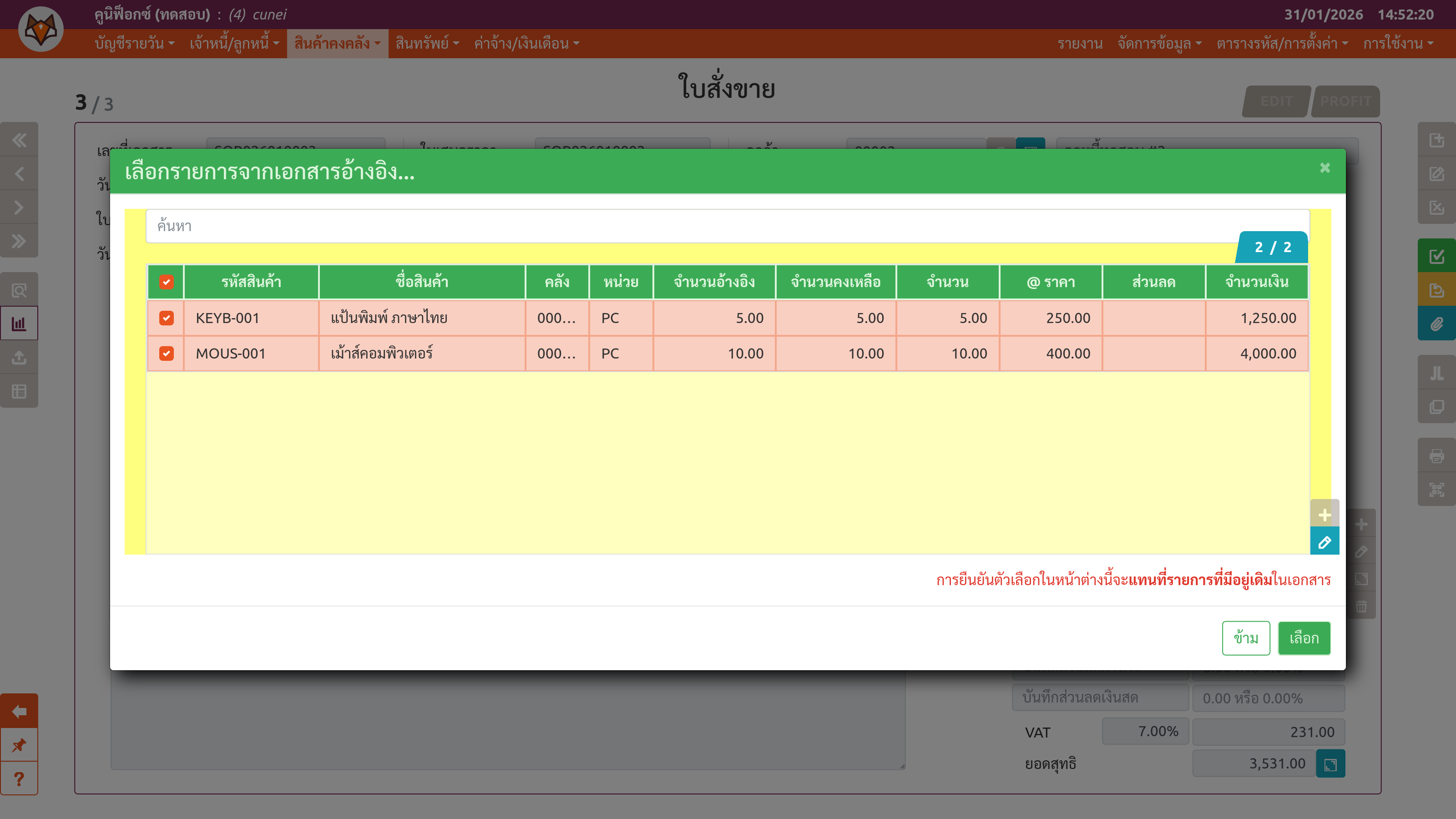เพจ "ใบสั่งขาย" (ขั้นตอนที่ 2)