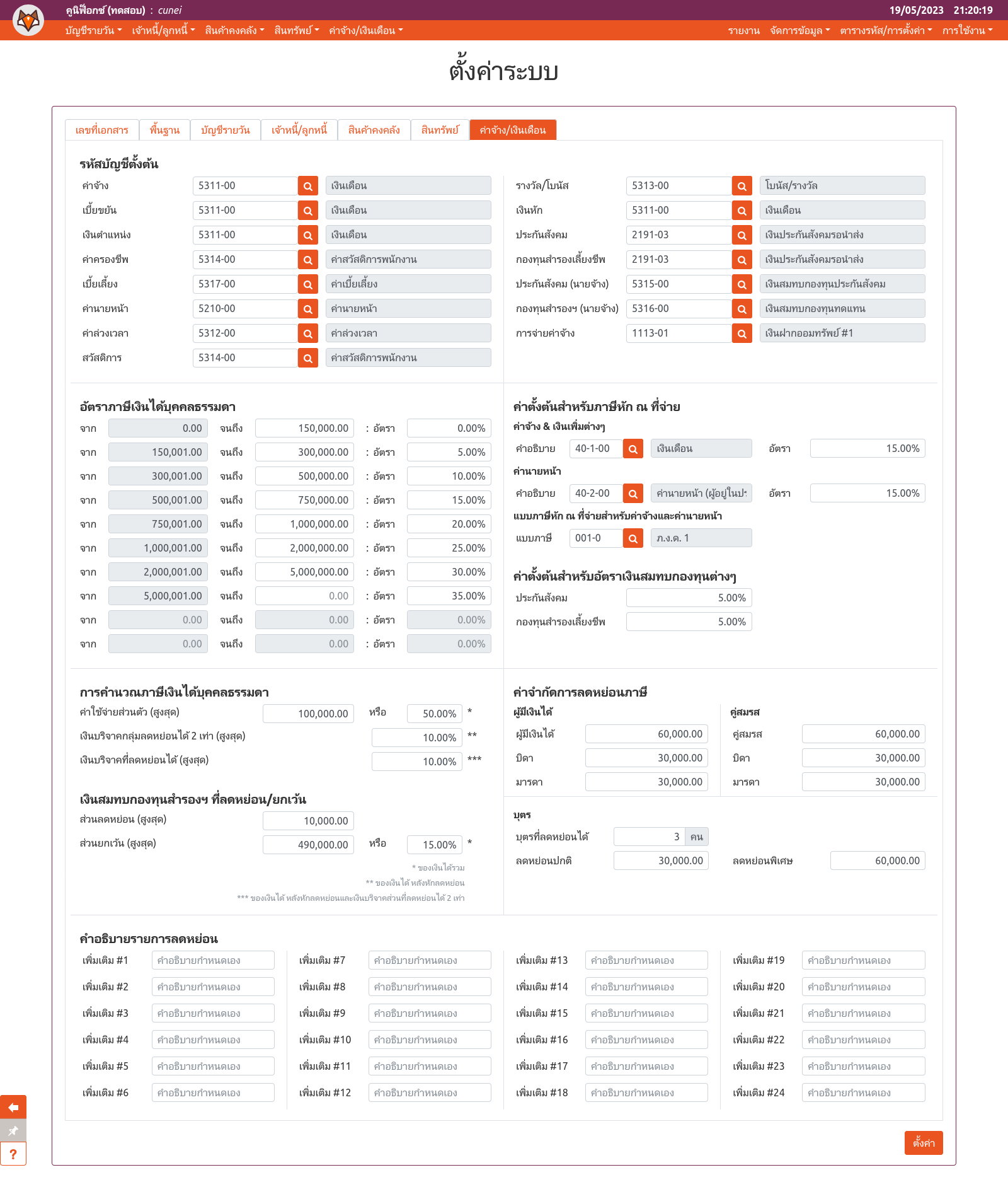 การตั้งค่าโมดูลค่าจ้าง/เงินเดือน