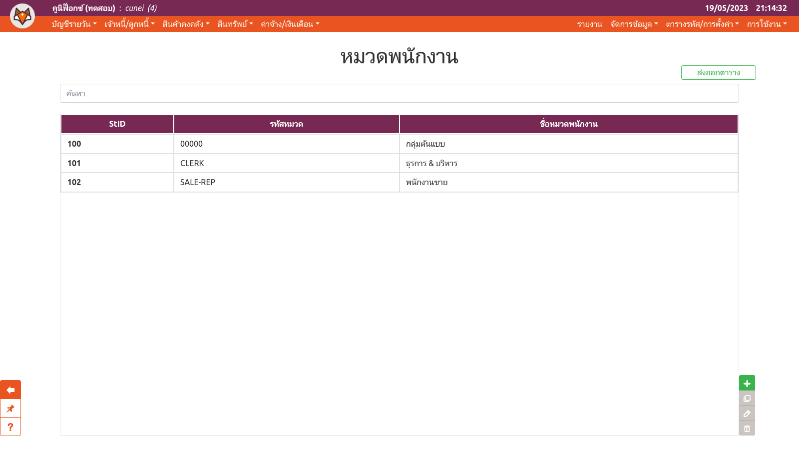 ตารางรหัสหมวดพนักงาน