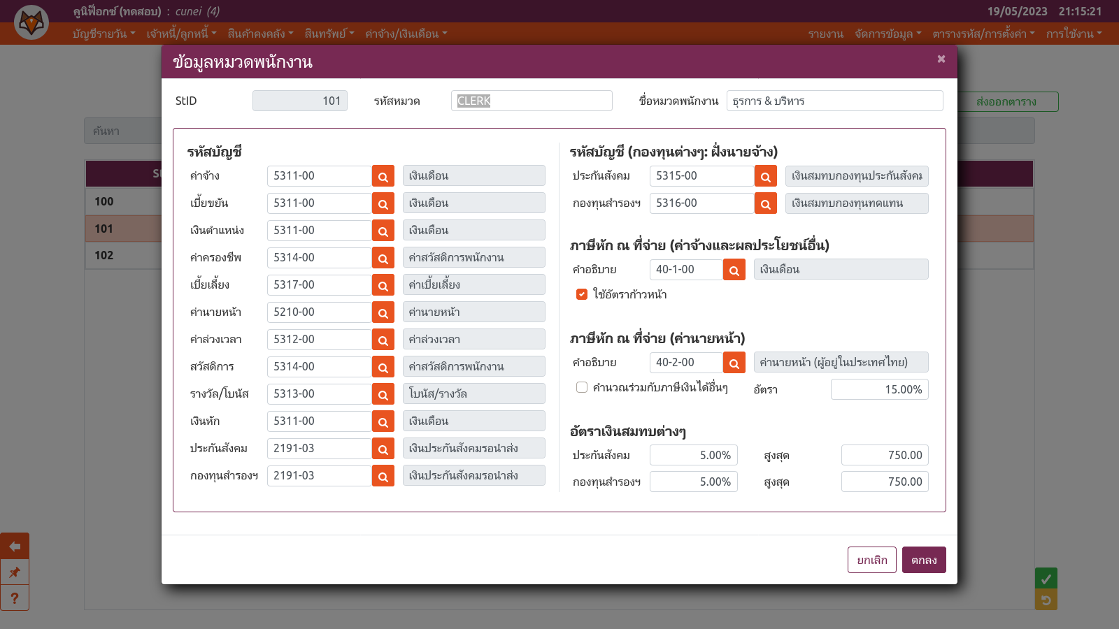 หน้าต่างฟอร์มของตารางรหัสหมวดพนักงาน