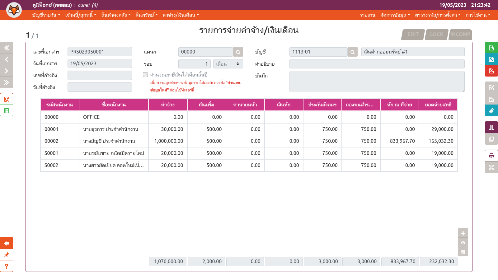 เพจ "รายการจ่ายค่าจ้าง/เงินเดือน"