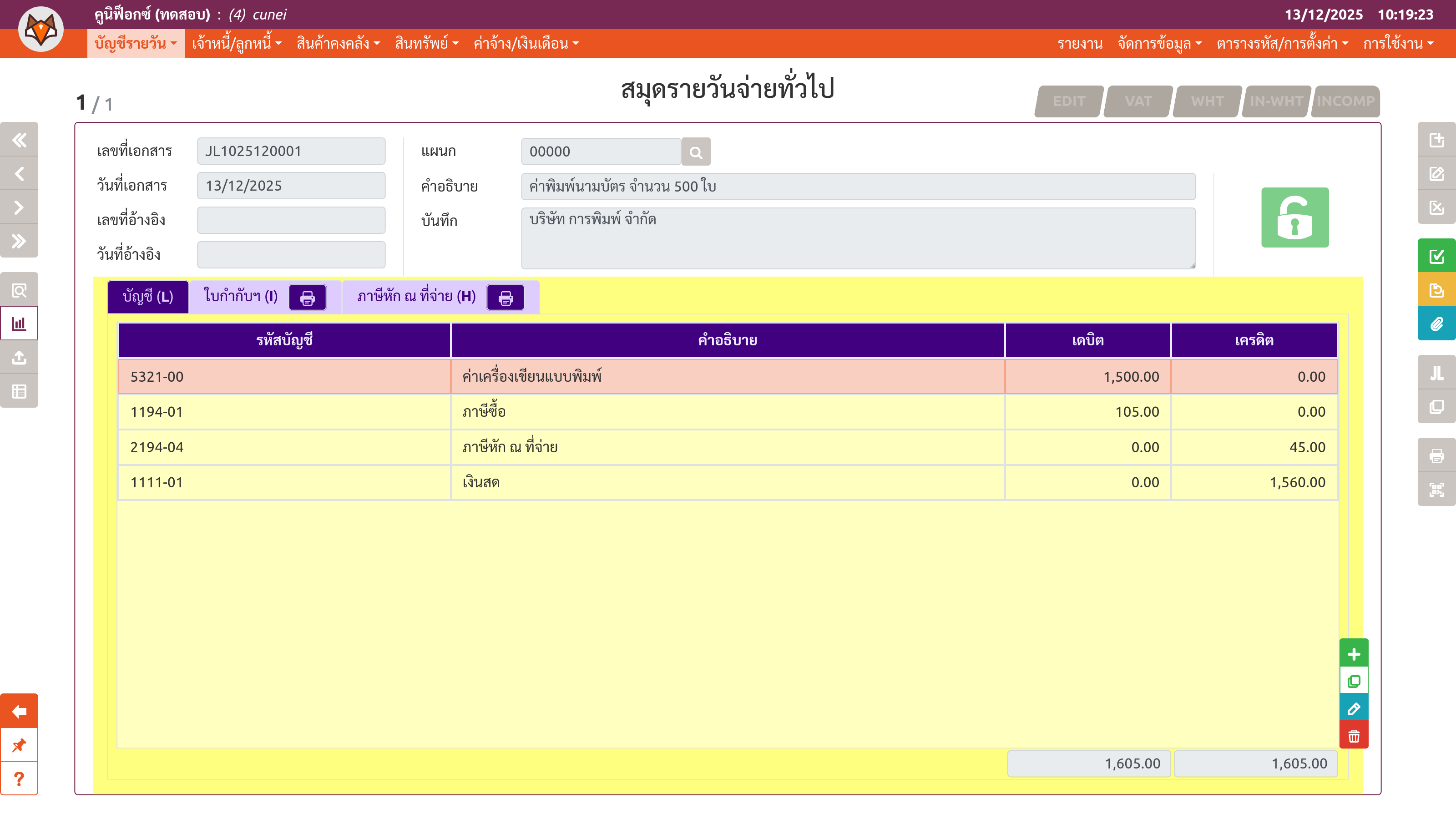 เพจ "บันทึกสมุดบัญชีรายวัน" (ขั้นตอนที่ 2)