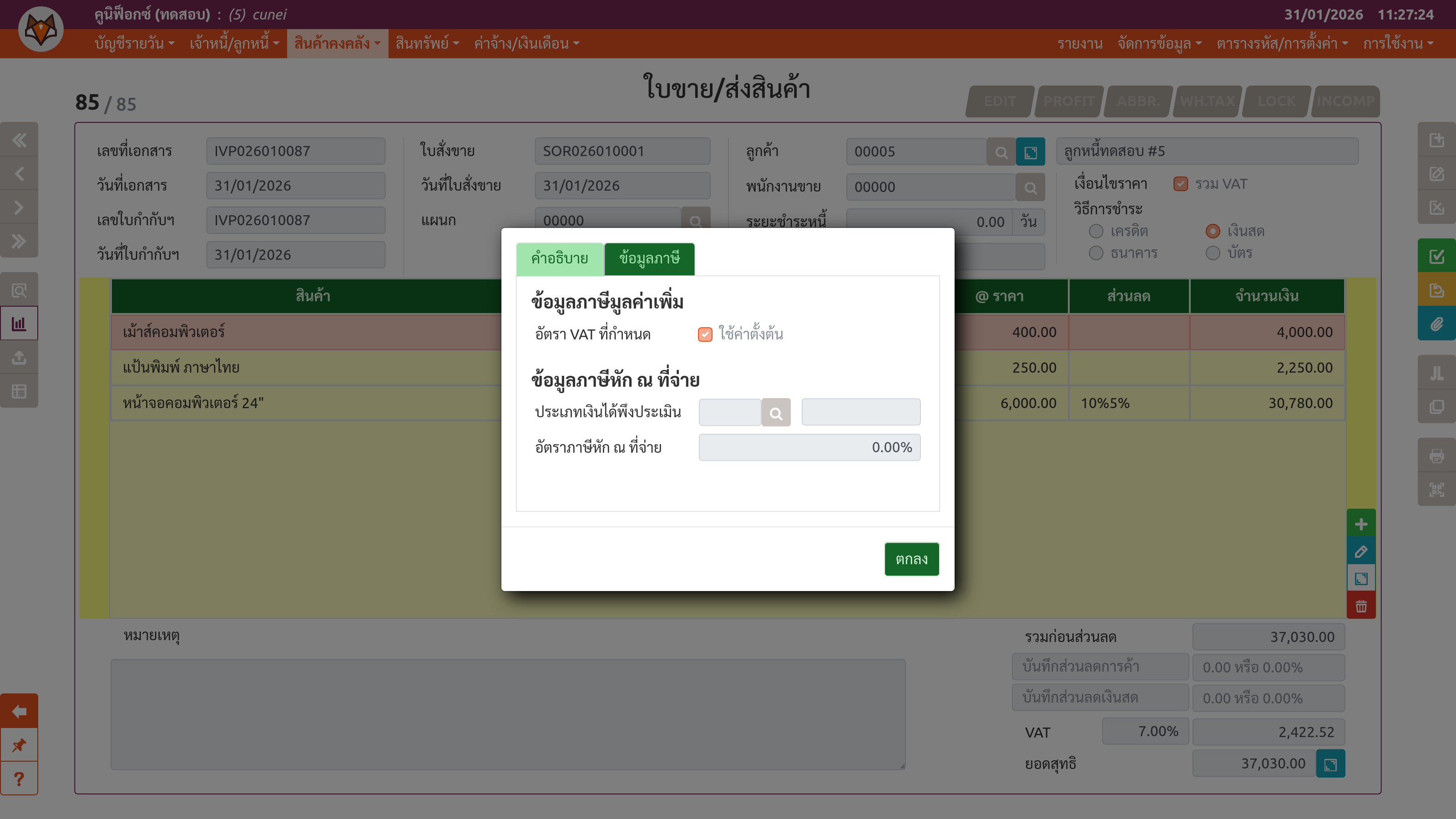 | 11:07, 11 กุมภาพันธ์ 2569 | 3,200 × 1,800 (549 กิโลไบต์) | Tenko (คุย | ส่วนร่วม) | เพจ "ใบขาย/ส่งสินค้า" (ขั้นตอนที่ 3: แท็บ "ข้อมูลภาษี" ของส่วนต่อขยาย) |