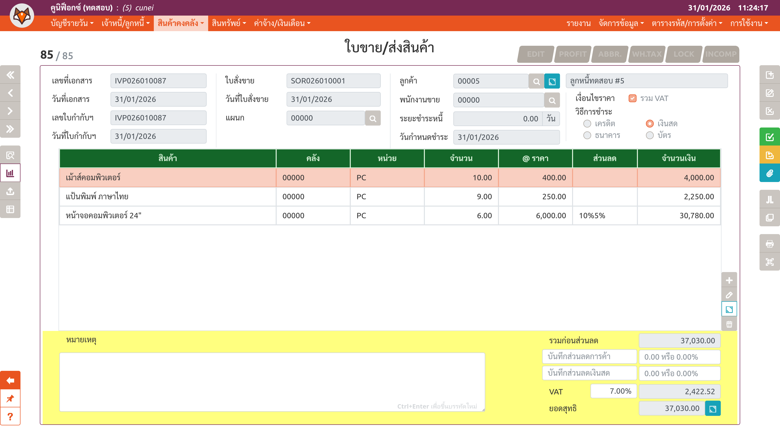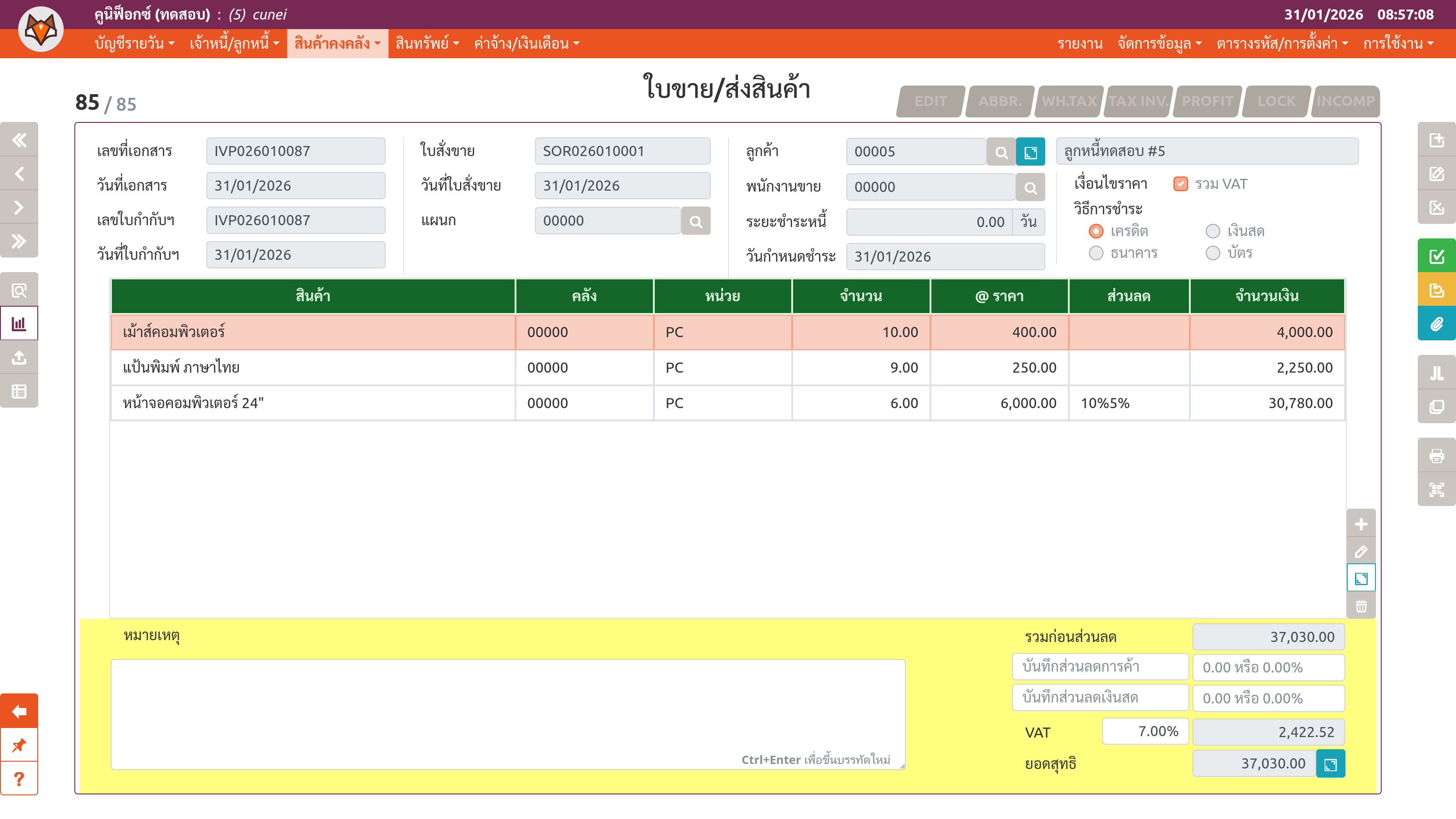 เพจ "ใบขาย/ส่งสินค้า" (ขั้นตอนที่ 4)