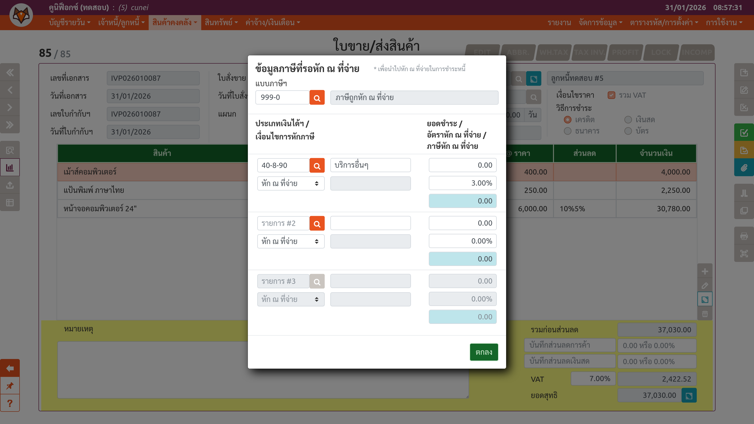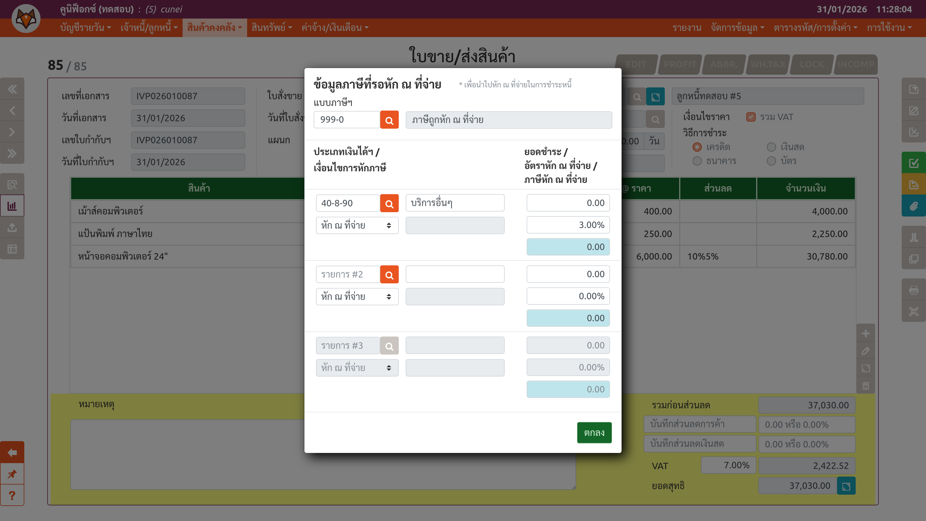 เพจ "ใบขาย/ส่งสินค้า" (ขั้นตอนที่ 4: ส่วนต่อขยาย)