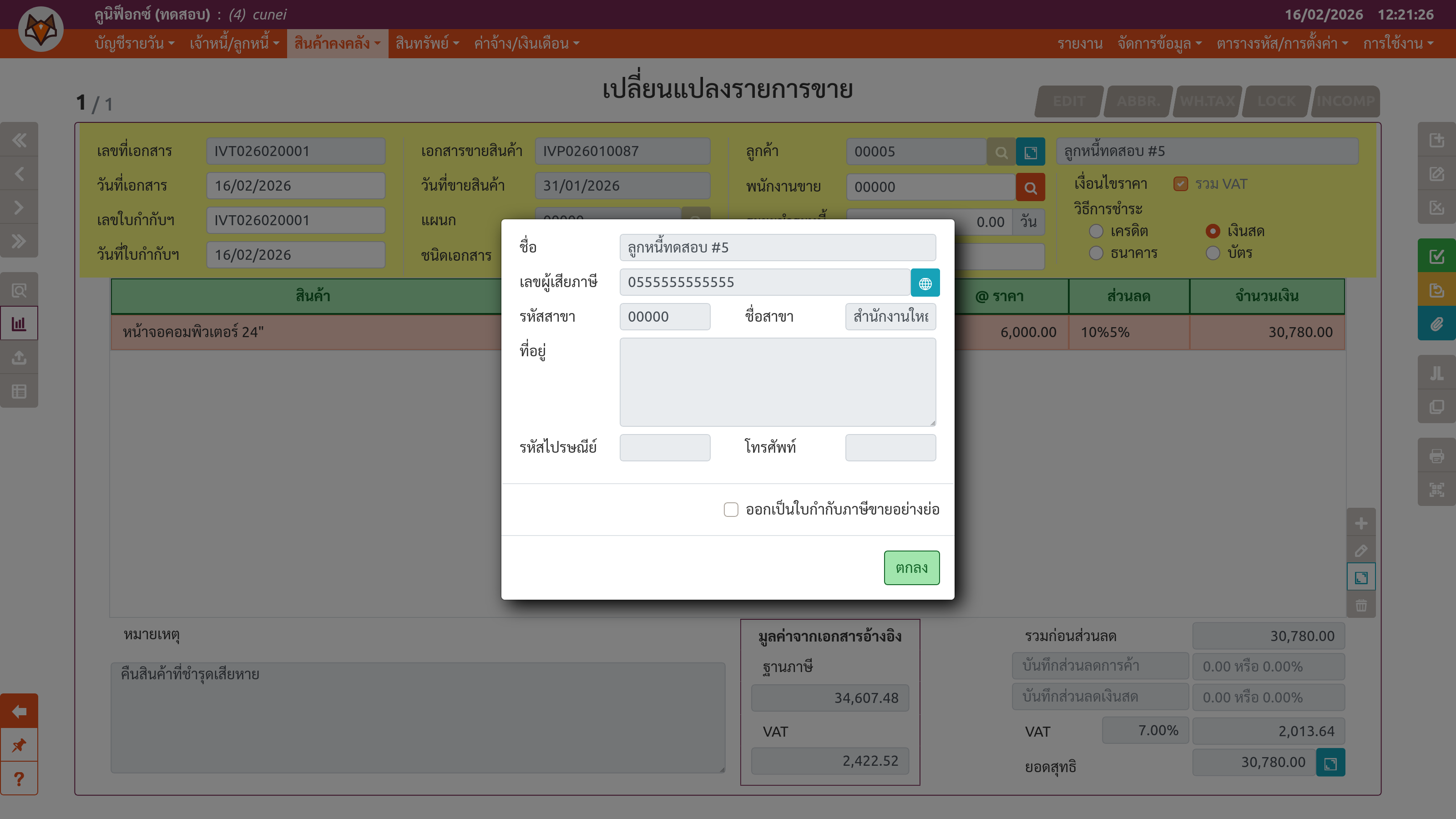เพจ "เปลี่ยนแปลงรายการขาย" (ขั้นตอนที่ 1: ส่วนต่อขยาย)