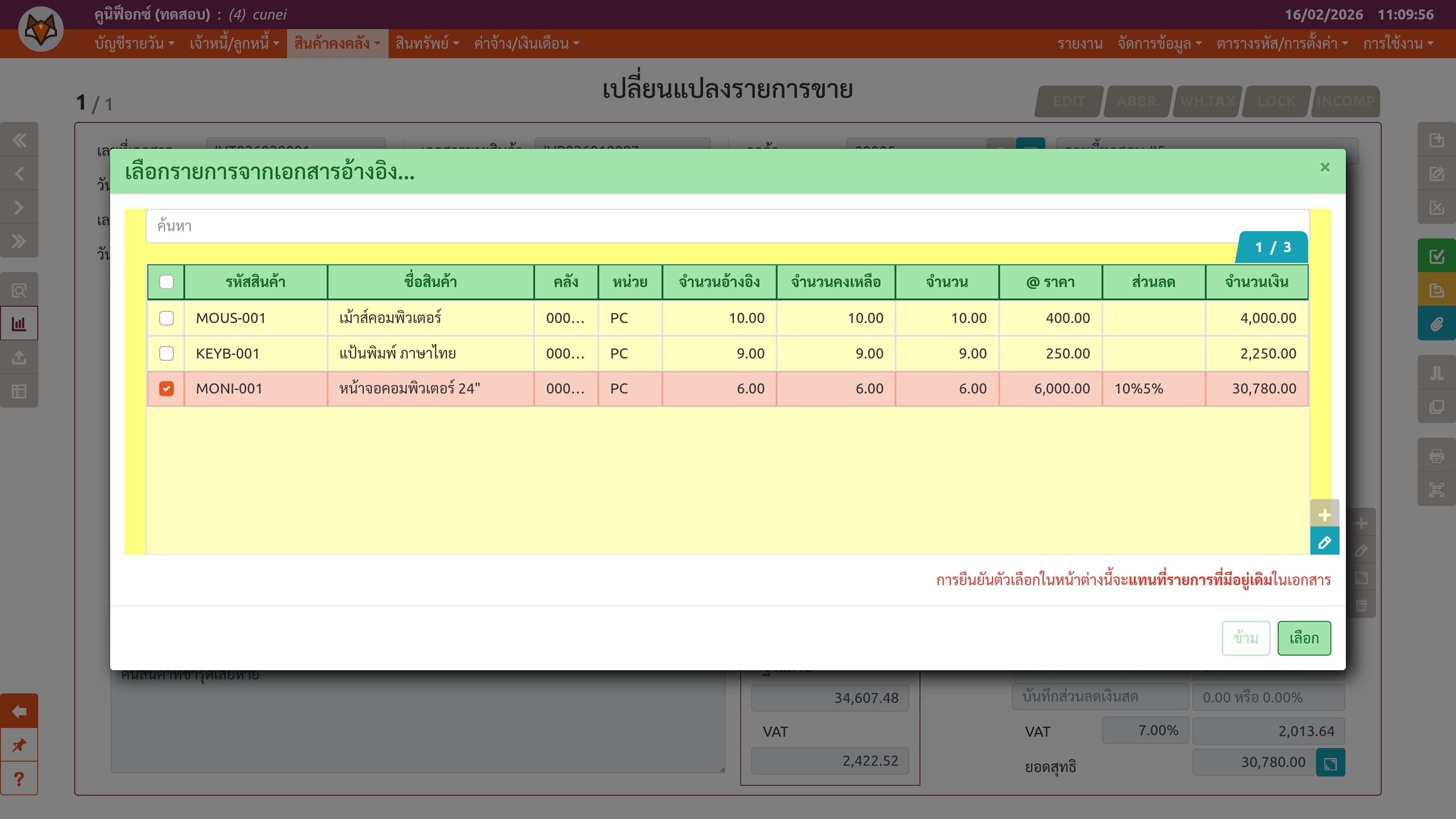 เพจ "เปลี่ยนแปลงรายการขาย" (ขั้นตอนที่ 2)
