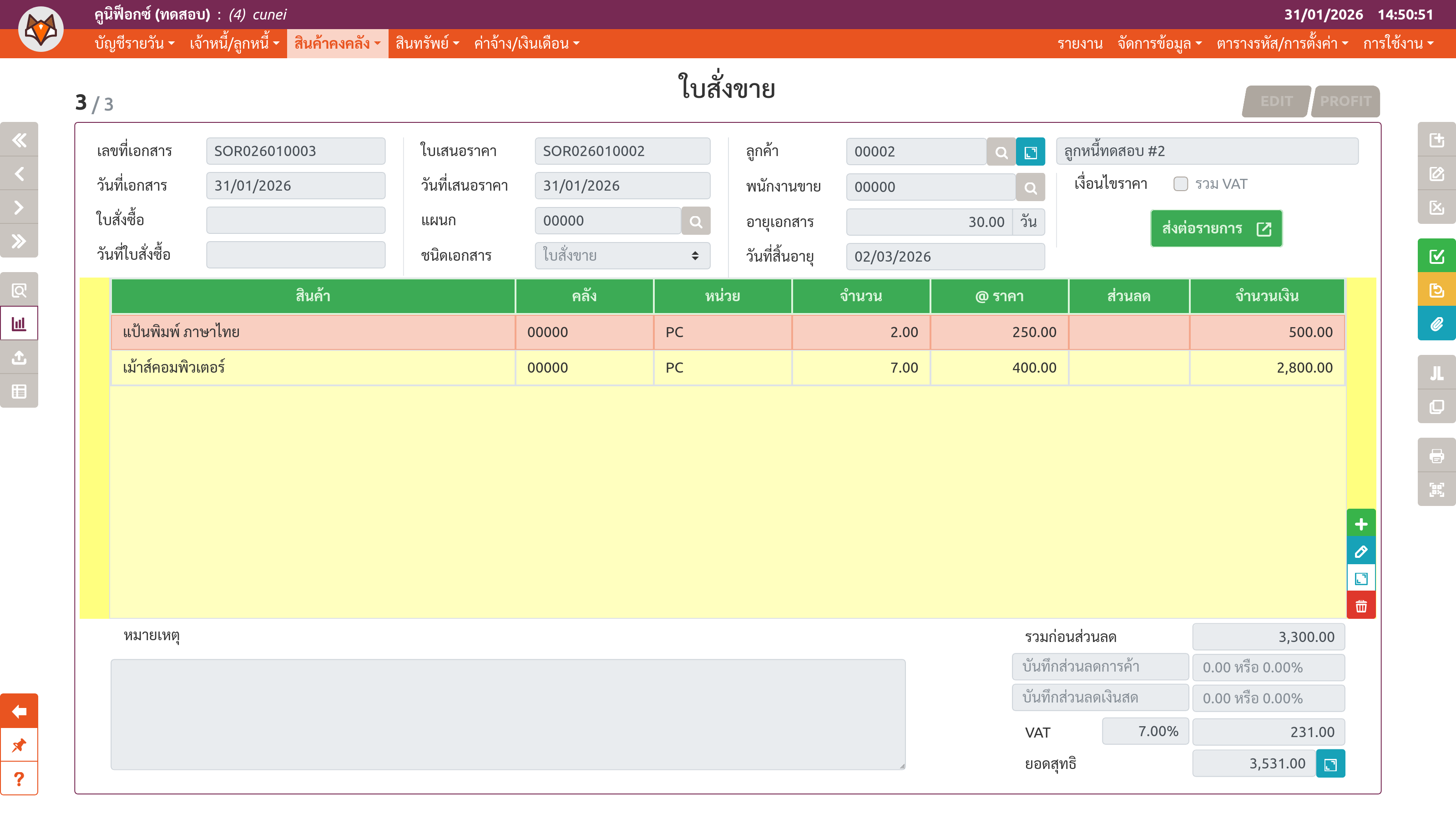 เพจ "ใบสั่งขาย" (ขั้นตอนที่ 3)