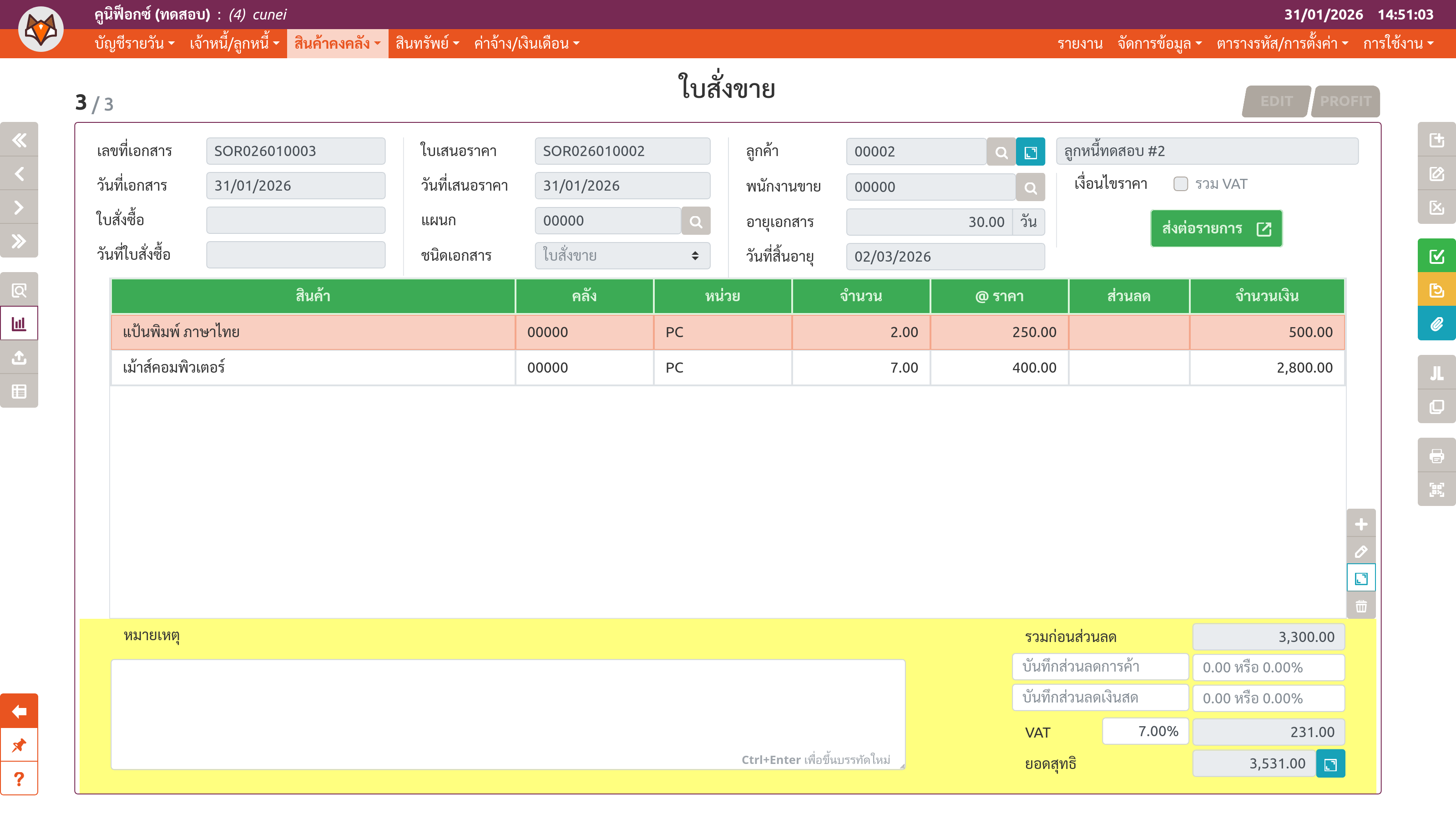 เพจ "ใบสั่งขาย" (ขั้นตอนที่ 4)