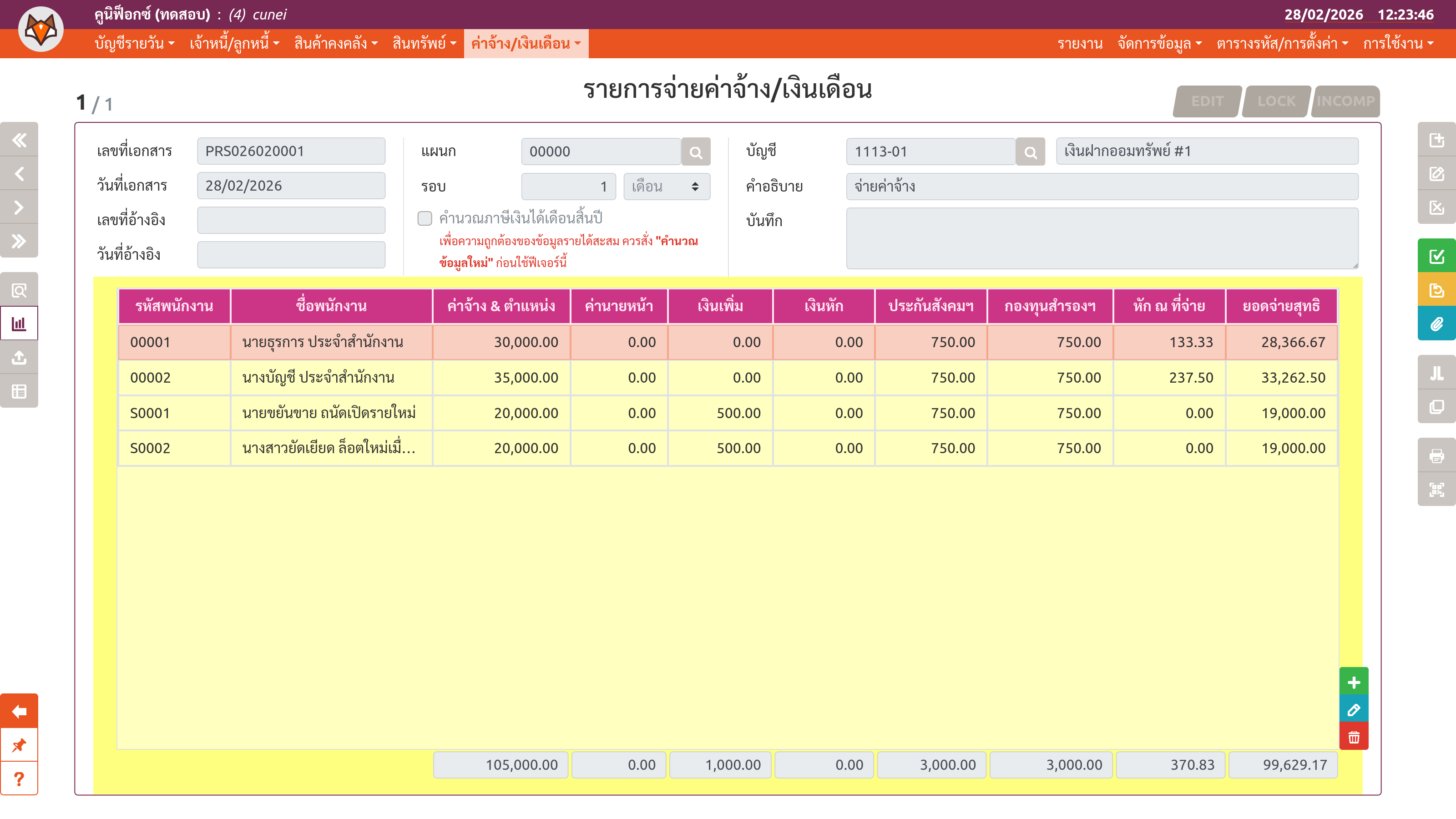 เพจ "รายการจ่ายค่าจ้าง/เงินเดือน" (ขั้นตอนที่ 3)