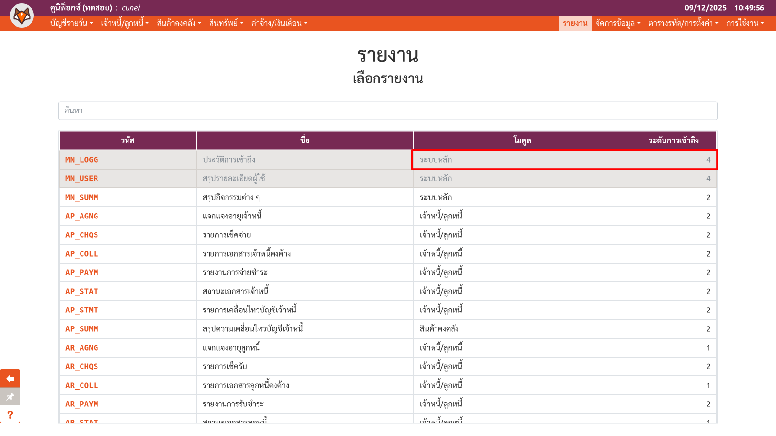โมดูลและระดับของรายงาน